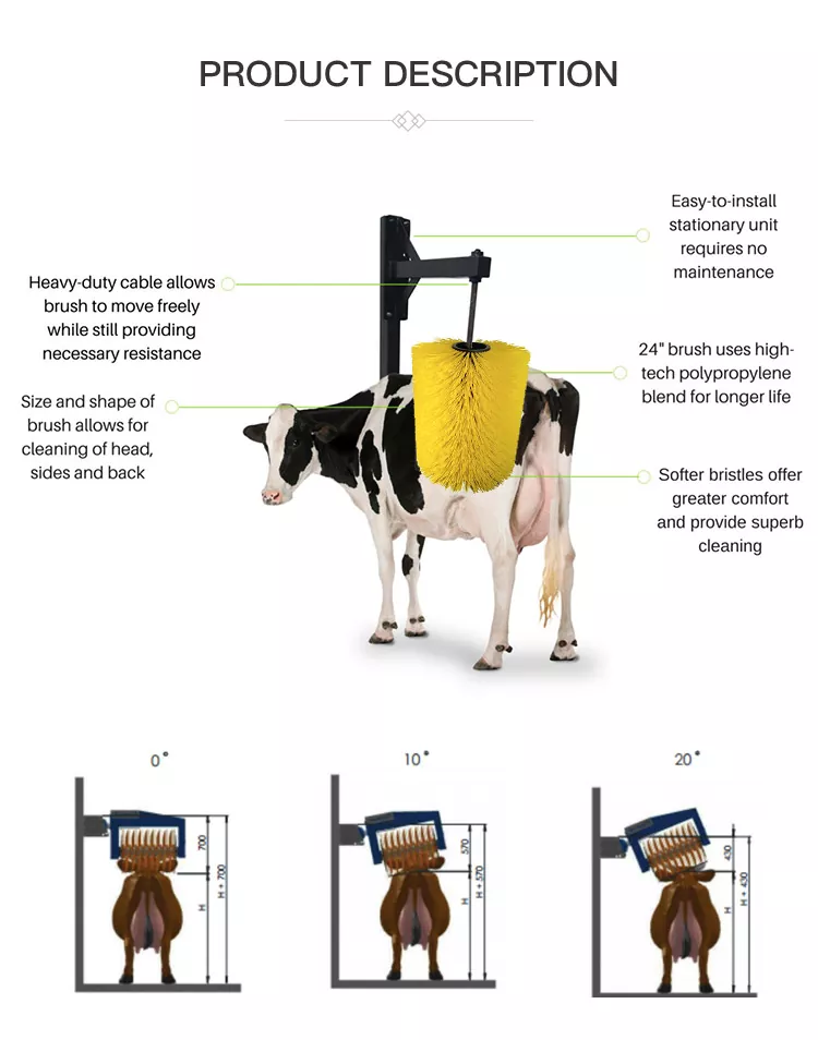 2. Az állítható 0°/10°/20°-os szögek megfelelnek a különböző méretű állatoknak, és lehetővé teszik a fej, az oldalak és a hát tisztítását.
