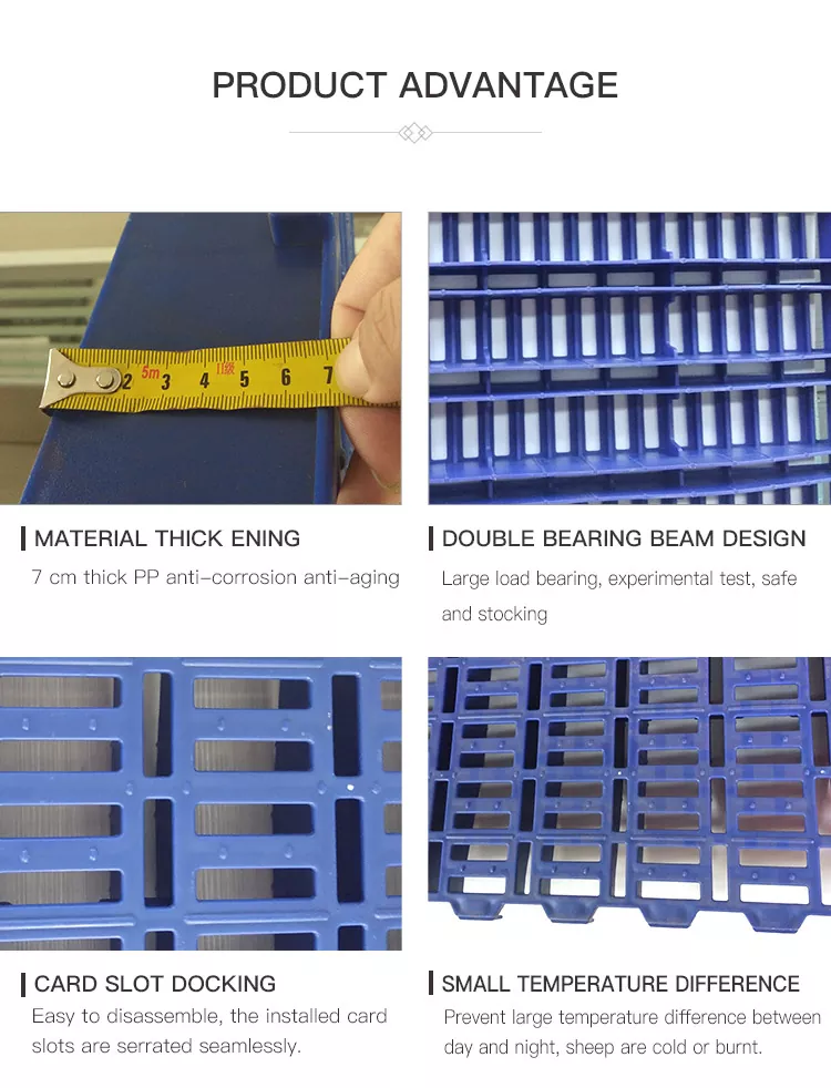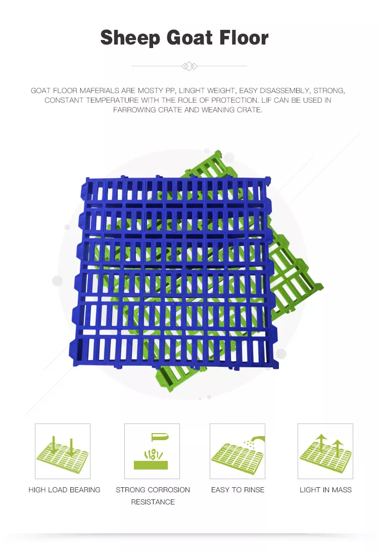 A Deba Brothers® a bárány műanyag lécpadlók professzionális kínai gyártójaként régóta elkötelezett az állattenyésztési berendezések megoldásaiban. PP műanyag rácsos padlóink kiemelkednek könnyű szerelhetőségükkel, hatékony trágyaelvezetésükkel és kiváló öregedésgátló tulajdonságokkal, és világszerte bármilyen méretű juhfarmot szolgálnak ki. Örömmel üdvözöljük, hogy minket válasszon megbízható hosszú távú szállítójaként a megbízható tenyészpadlókhoz.